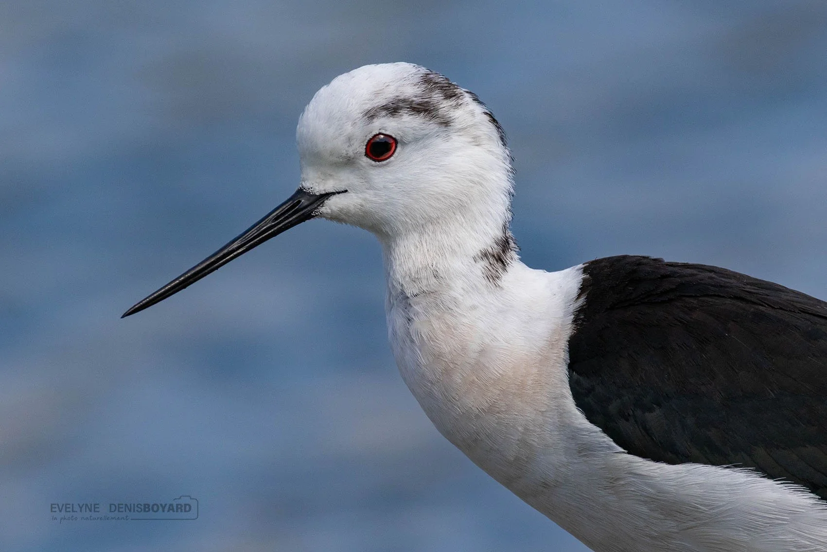 Portrait d'une échasse blanche.