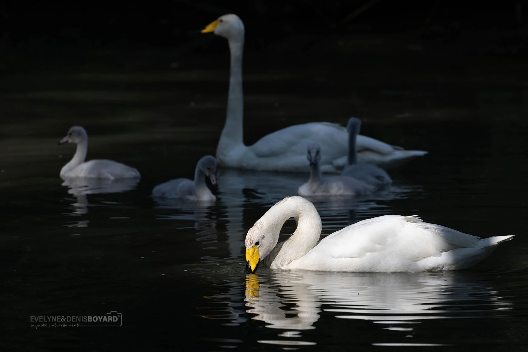 Famille de cygnes chanteurs.