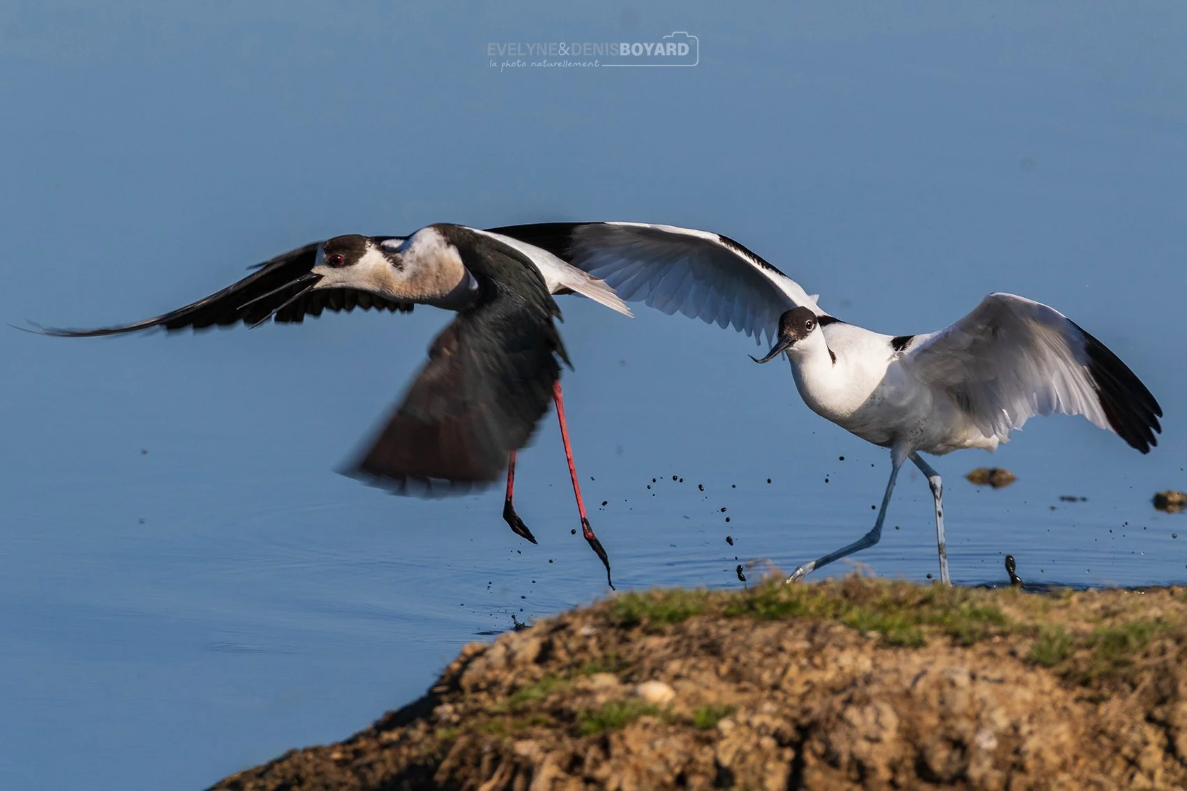 Friction entre une échasse blanche (à gauche) et une avocette élégante.