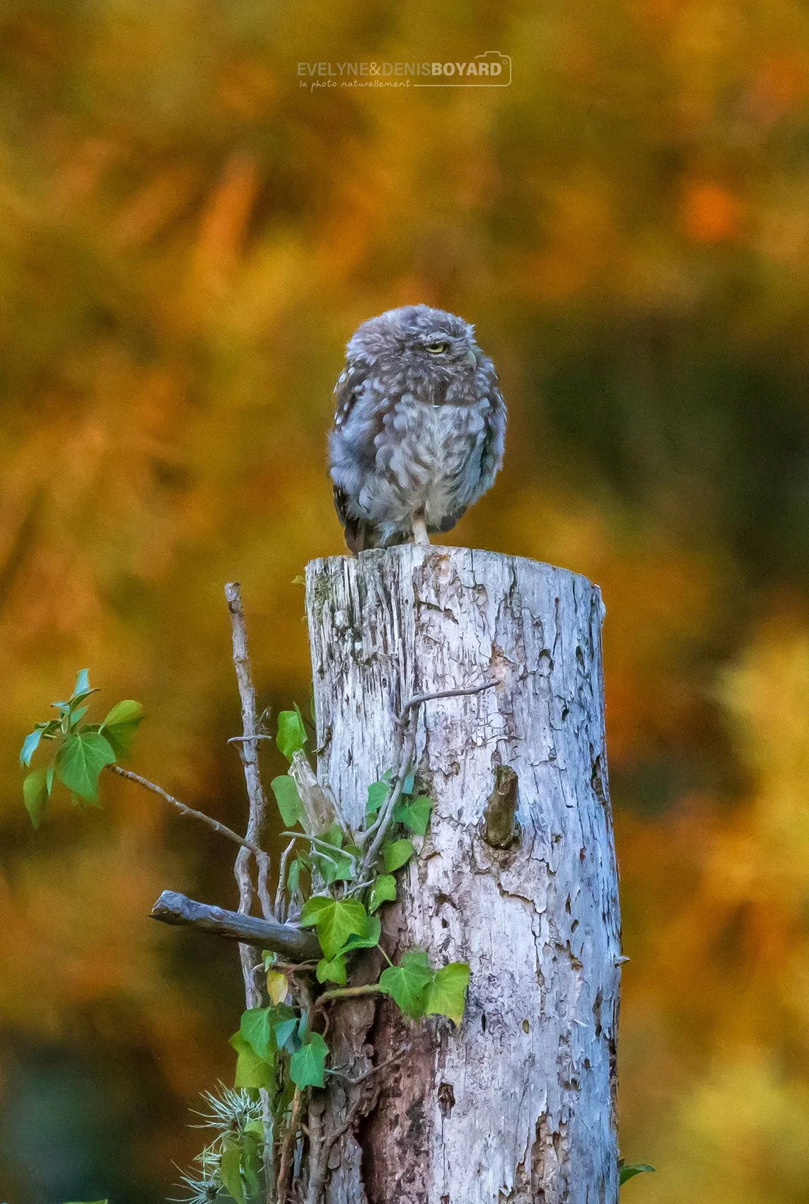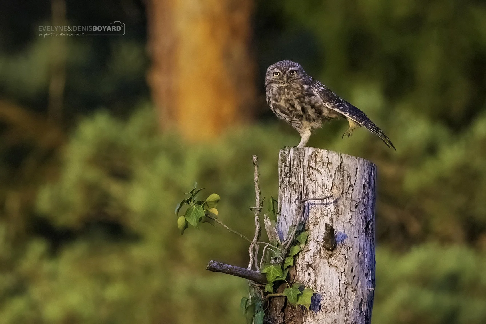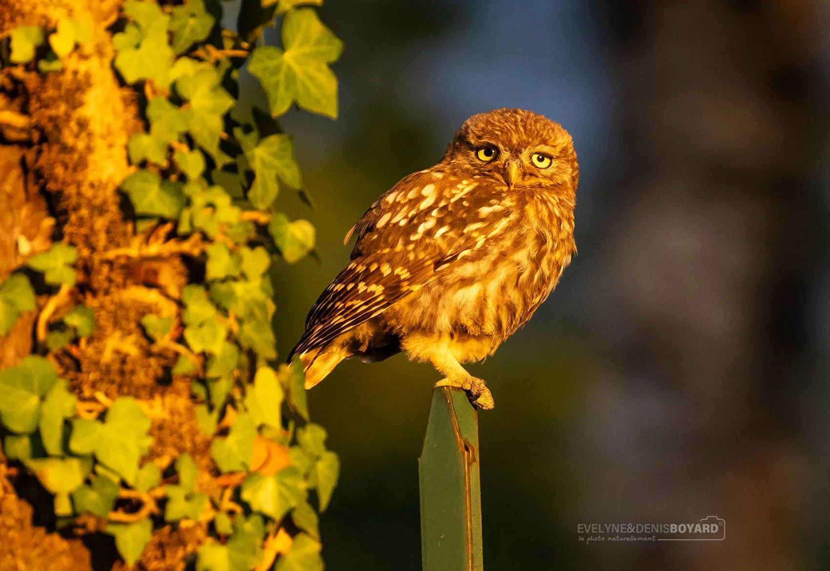 Chouette chevêche, à l'heure dorée.
