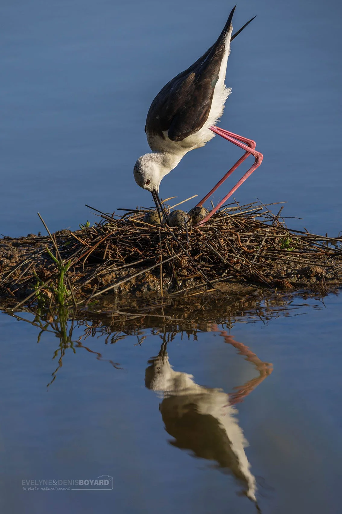 Nidification d'une échasse blanche.