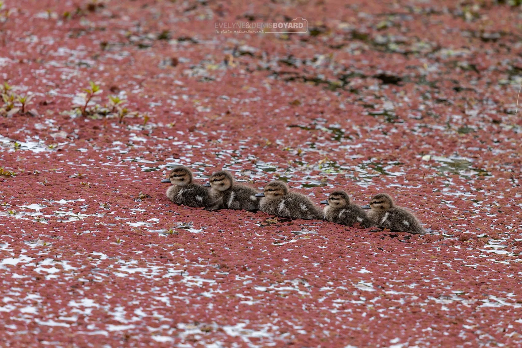 Petits de canards colverts, en file indienne.