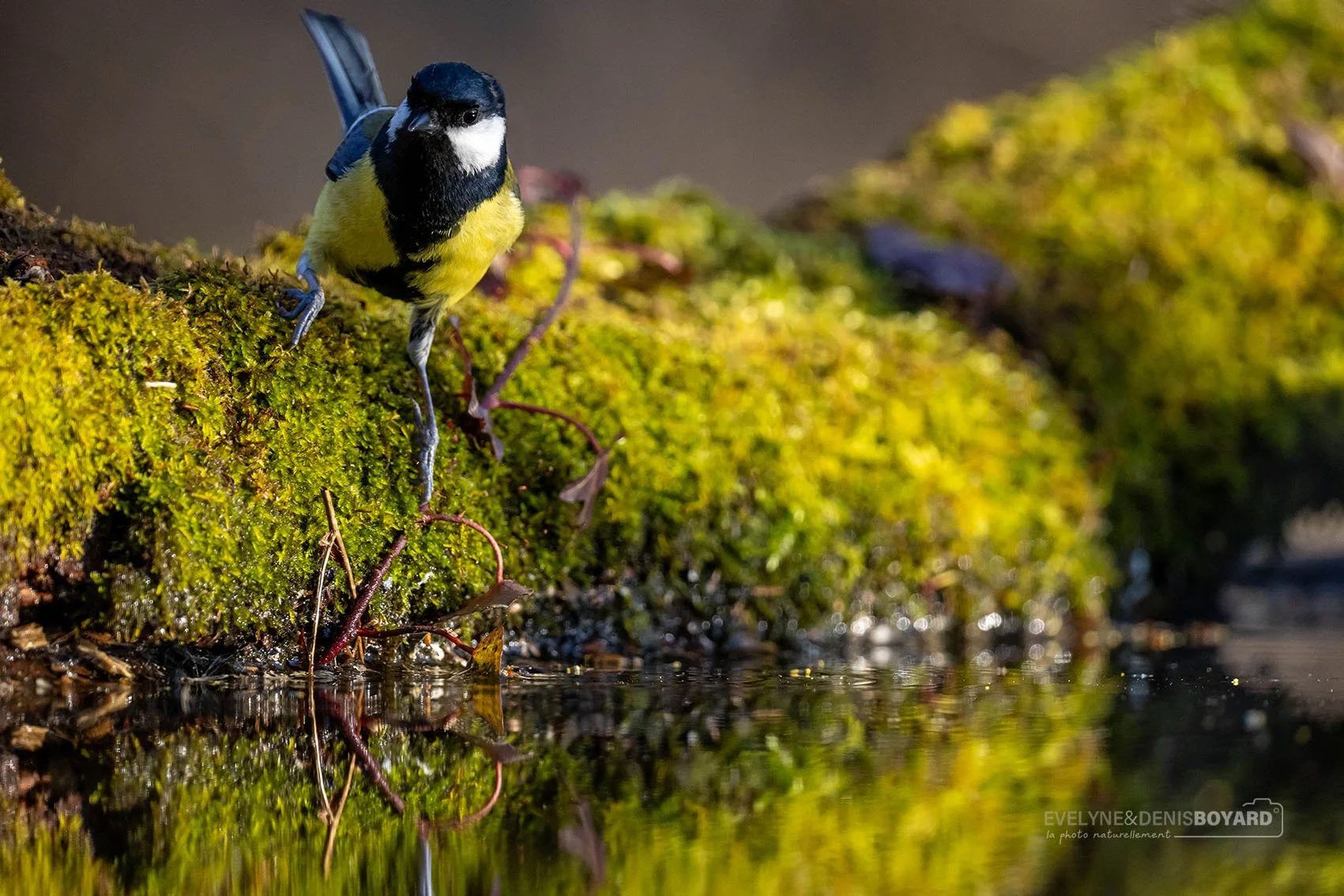 Mésange charbonnière près d'un point d'eau.