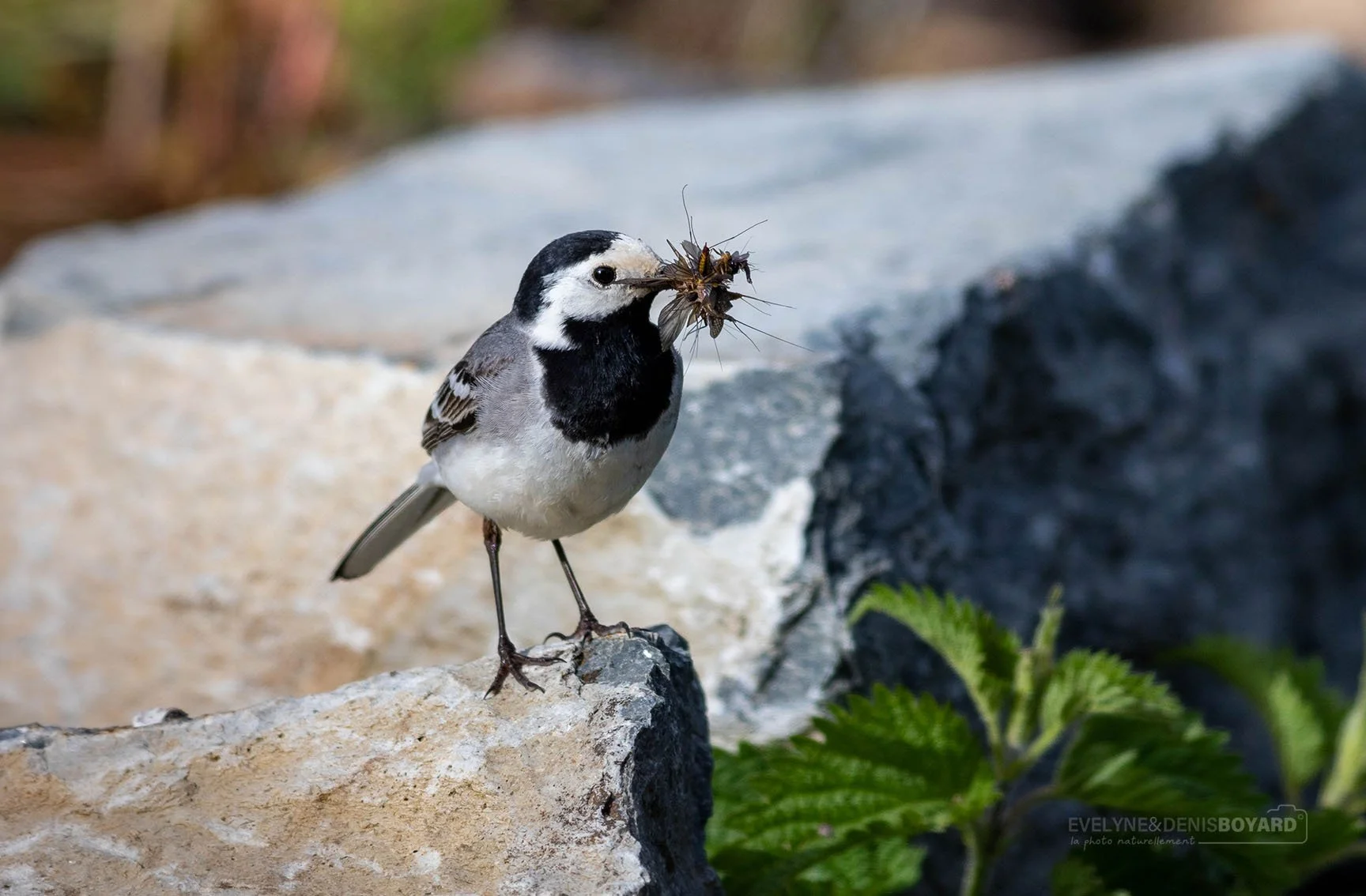 Bergeronnette grise ayant capturé des éphémères pour nourrir ses jeunes.