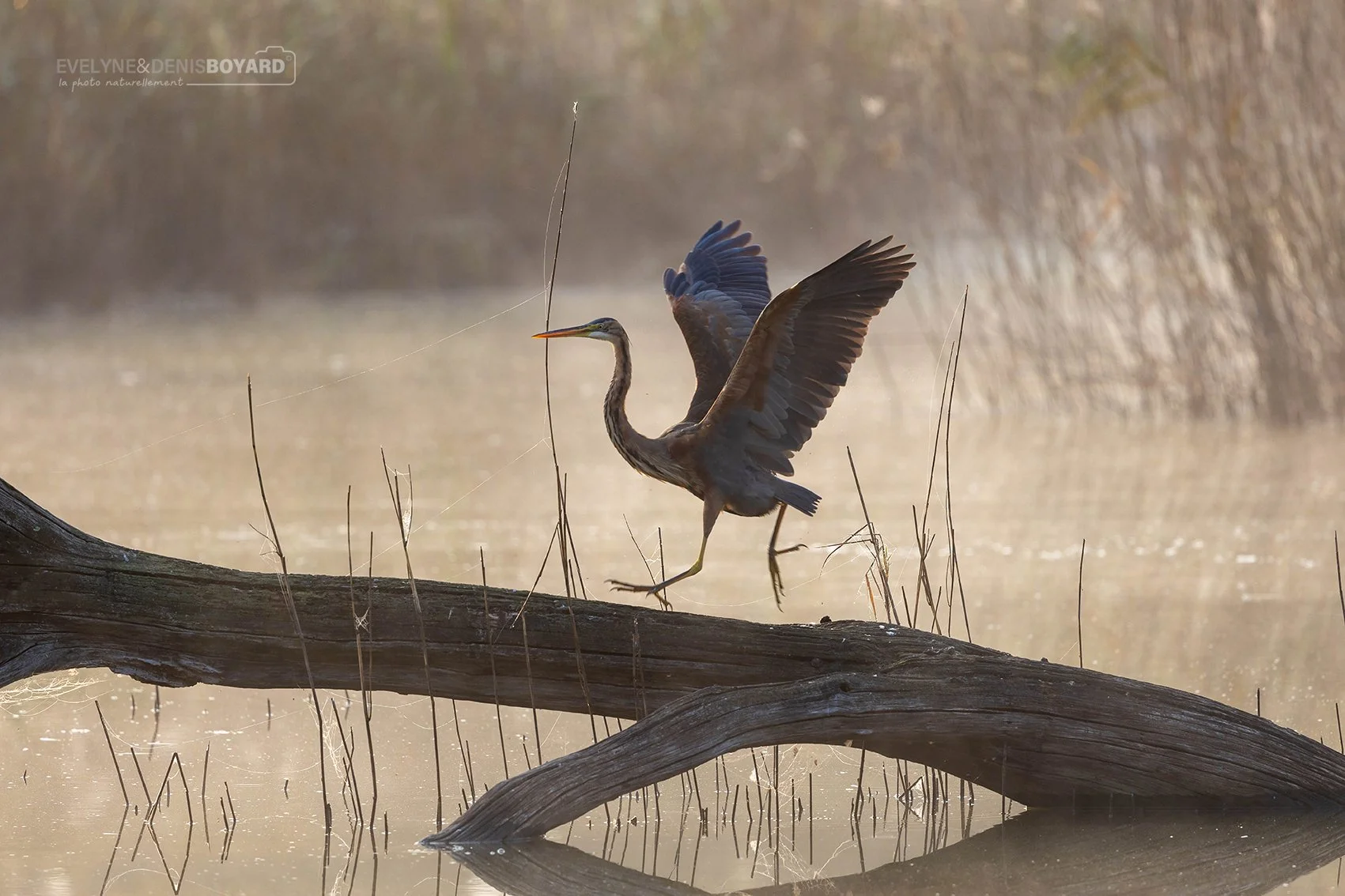 La grâce du héron pourpré à l'aube.
