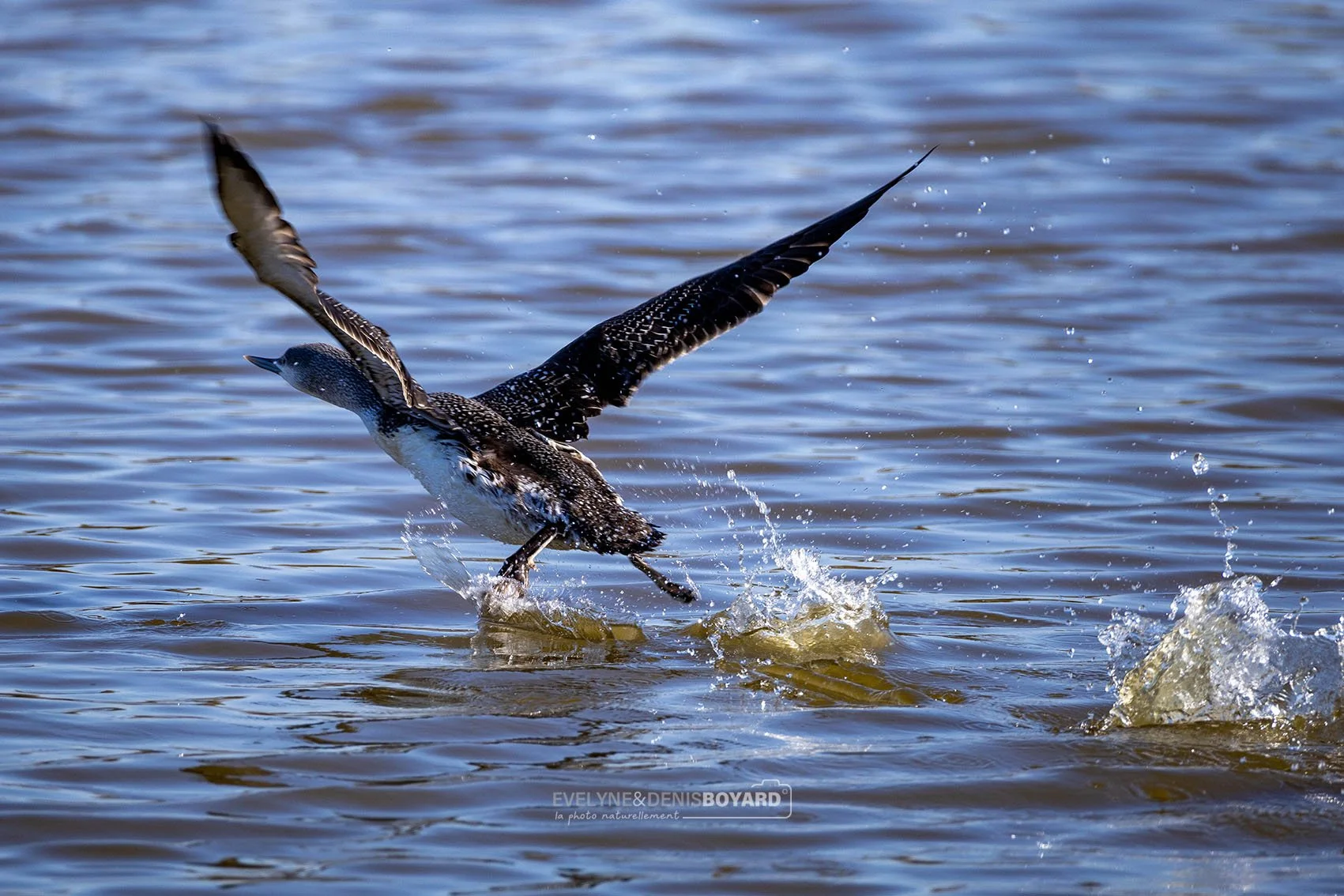 Envol d'un jeune plongeon catmarin.