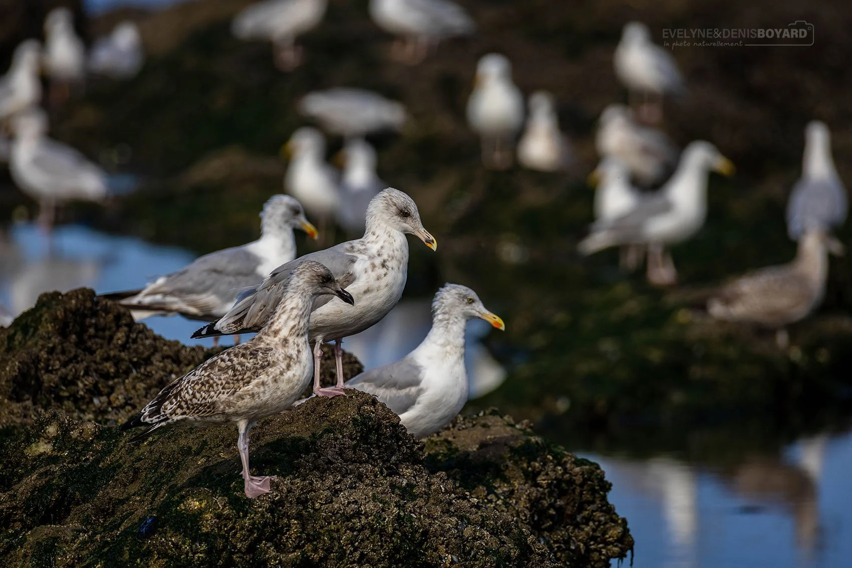 Jeunes goélands argentés sur l'estran.