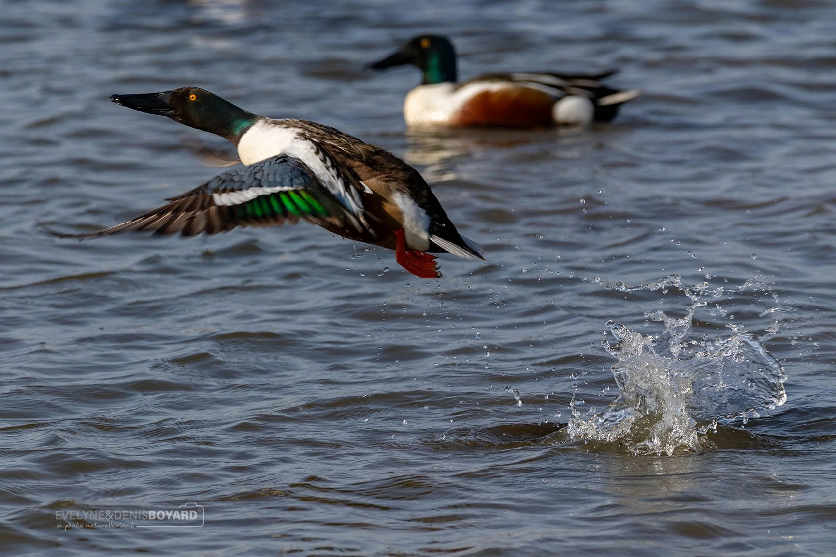 Envol d'un canard souchet mâle.