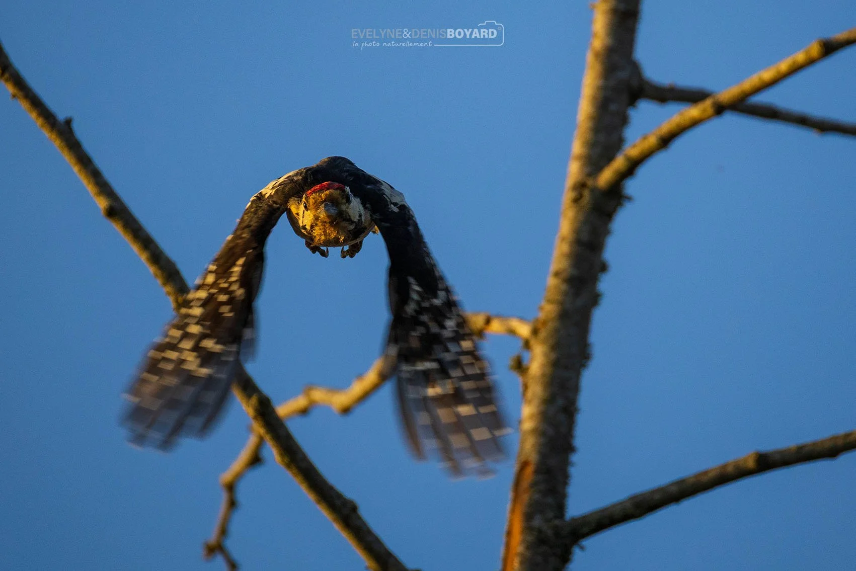 Envol d'un pic épeiche.