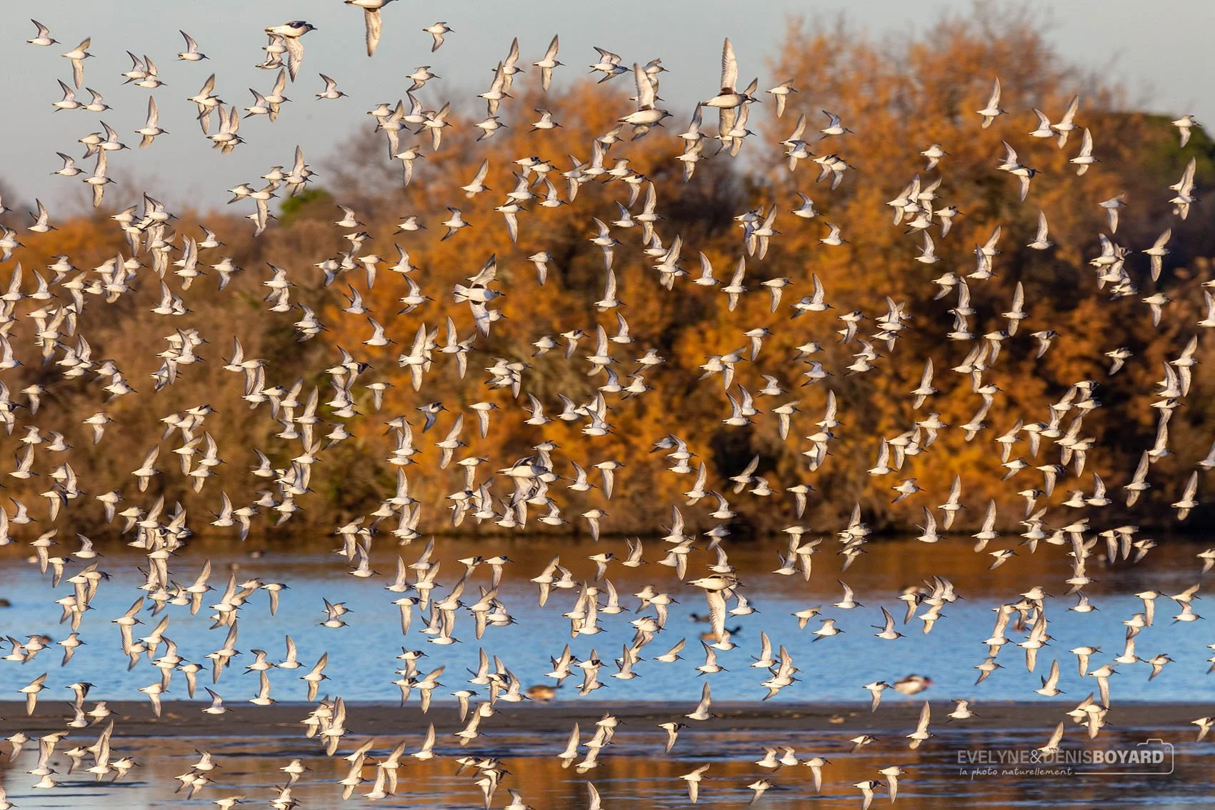 Envol de bécasseaux variables à l'automne.