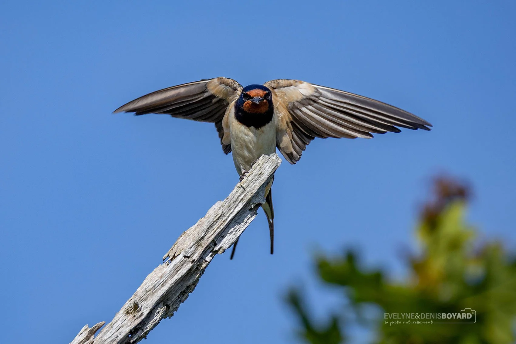 Hirondelle rustique, prête à s'envoler.