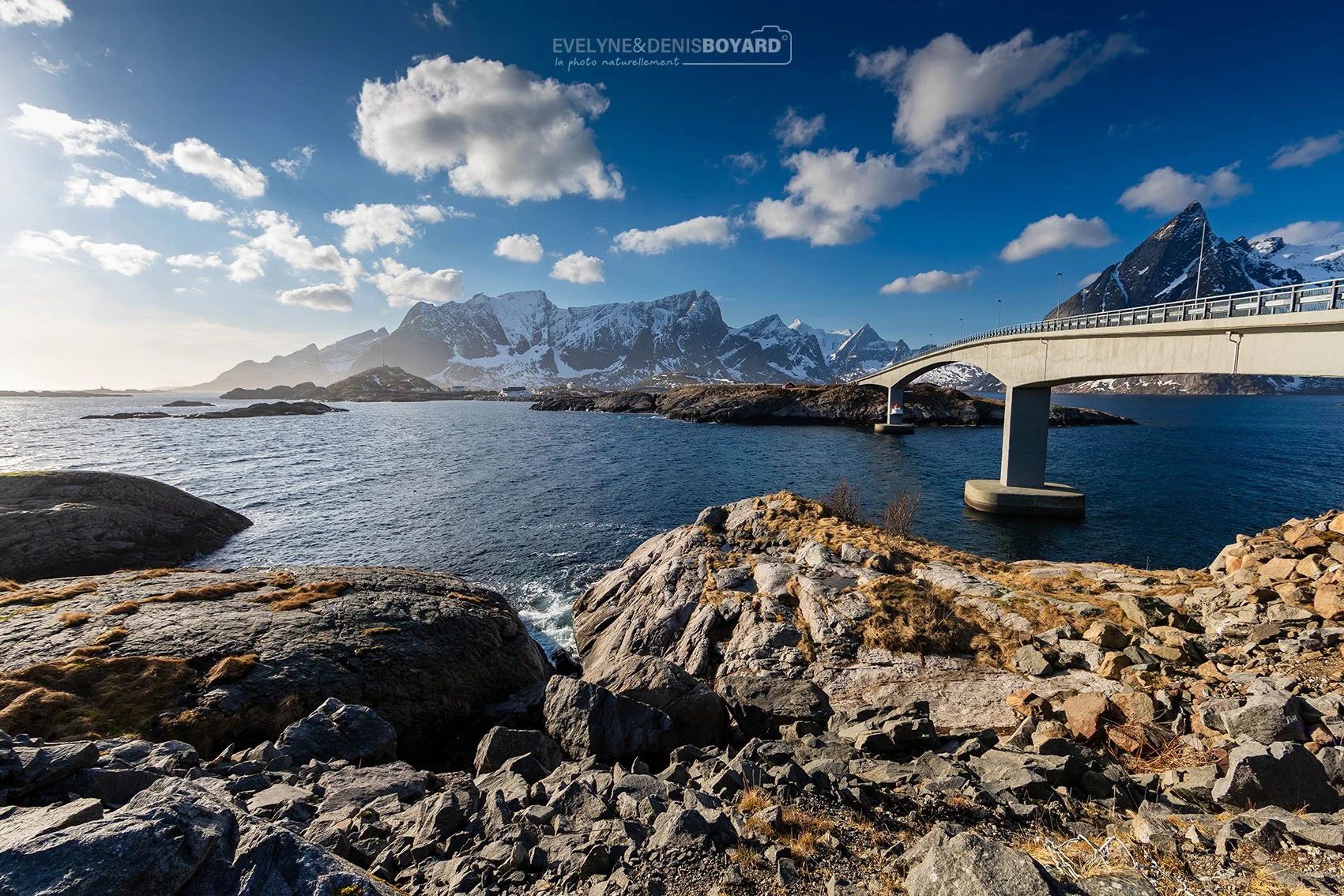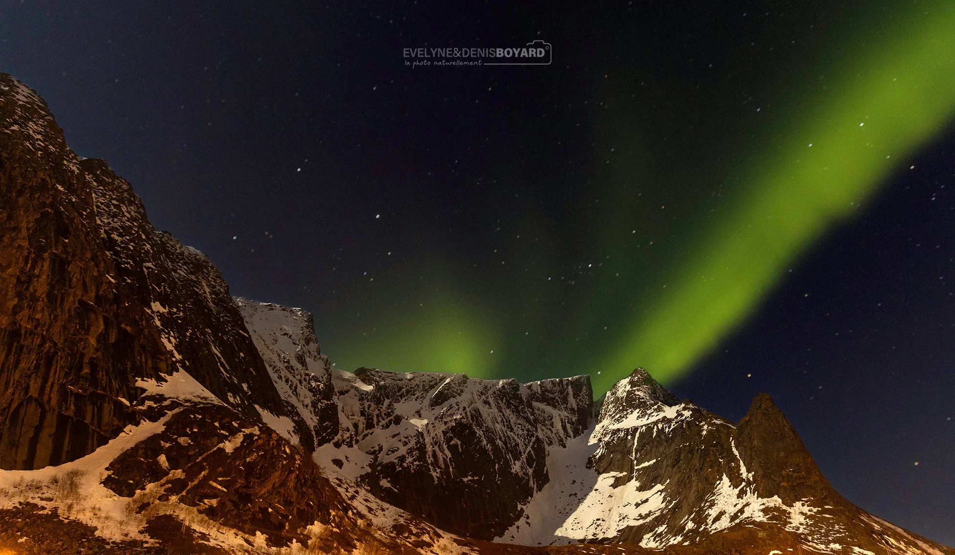 La magie opère dès la traversée en bateau qui mène de Bodø aux îles Lofoten. Les lumières y sont fabuleuses, c’est là que l’on a photographié nos premières aurores boréales. Les montagnes et les falaises, aux pics acérés, abritent des villages de pêcheurs très photogéniques.